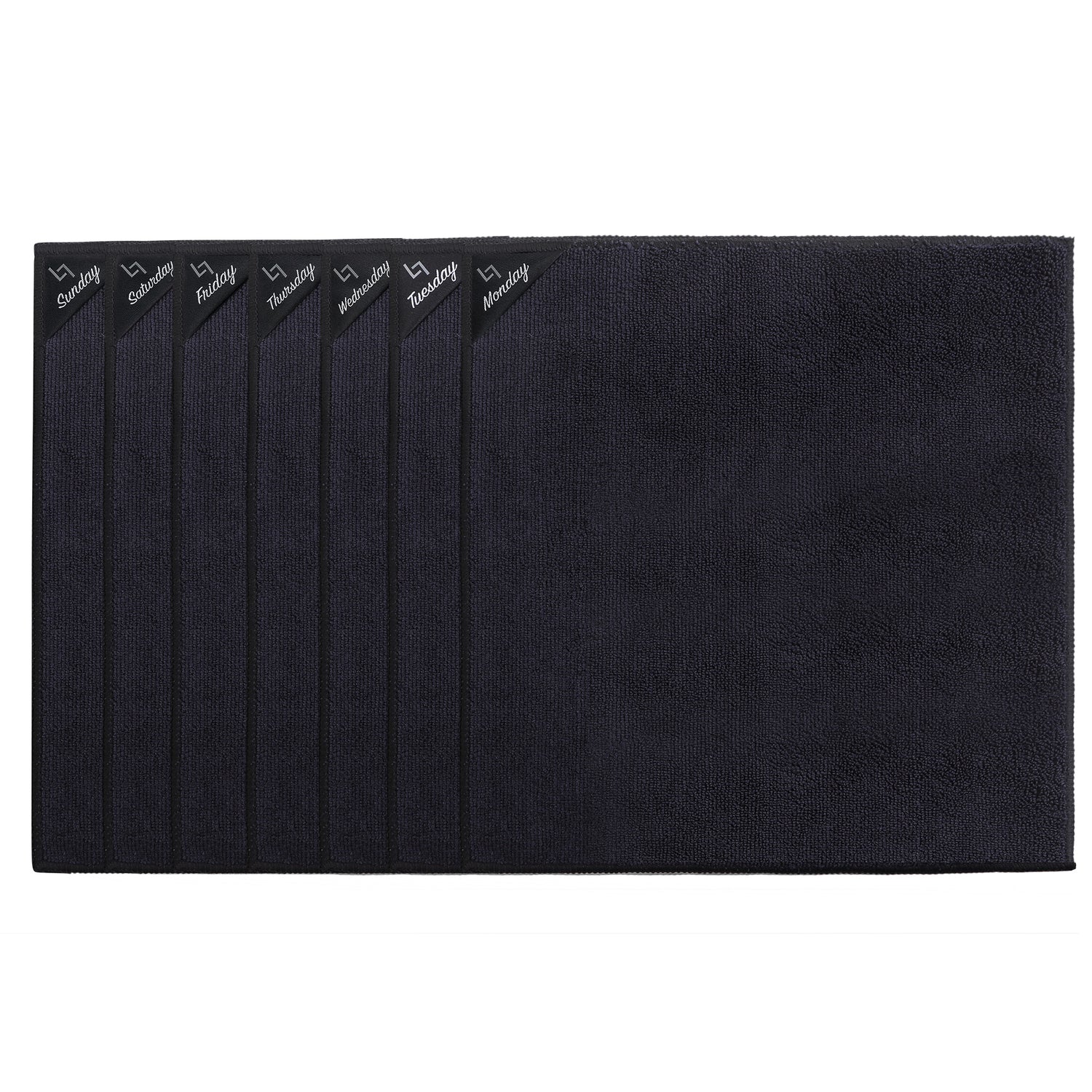 7 Microfasertücher in schönem Anthrazit und mit den Wochentagen beschriftet.